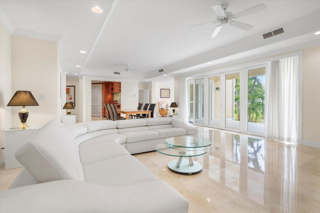 Nestled within the prestigious Harbour Breeze community , this elevated 3-bedroom, 3.5-bathroom condo offers 2,800 sq. ft. of sunlit living space. The open floor plan extends to a spacious balcony, where beautifully landscaped grounds and views create a serene retreat. The generously sized master suite is tastefully furnished, featuring a walk-in closet and bathroom with tub, shower, and vanity. Both additional bedrooms are en-suite, offering ample closet space. The well-equipped kitchen includes a casual dining counter flowing into the dining and living areas. This residence boasts hurricane-impact windows, high tray ceilings with recessed lighting, central A/C, an in-unit laundry room, multiple storage closets, pantry, and ceiling fans throughout. Residents enjoy access to a gated community with resort-style amenities, including a zero-entry swimming pool, hot tub, spacious patio with covered entertaining areas, fully equipped gym, and automatic generator. The unit also includes two dedicated parking spaces, a large ground-level storage room, and elevator access.